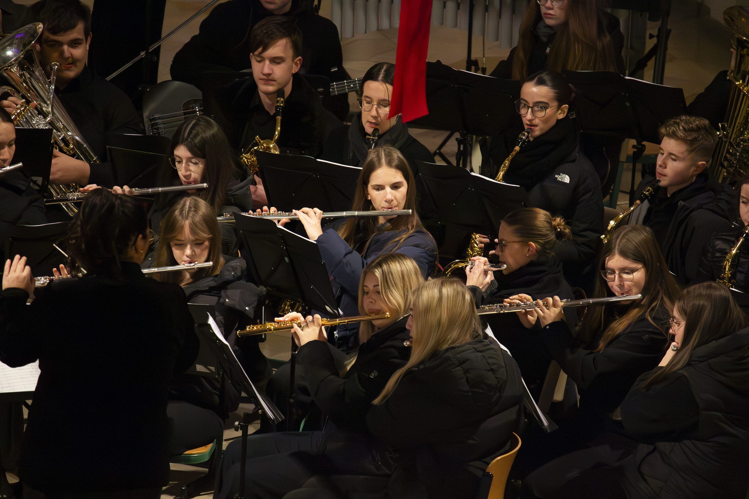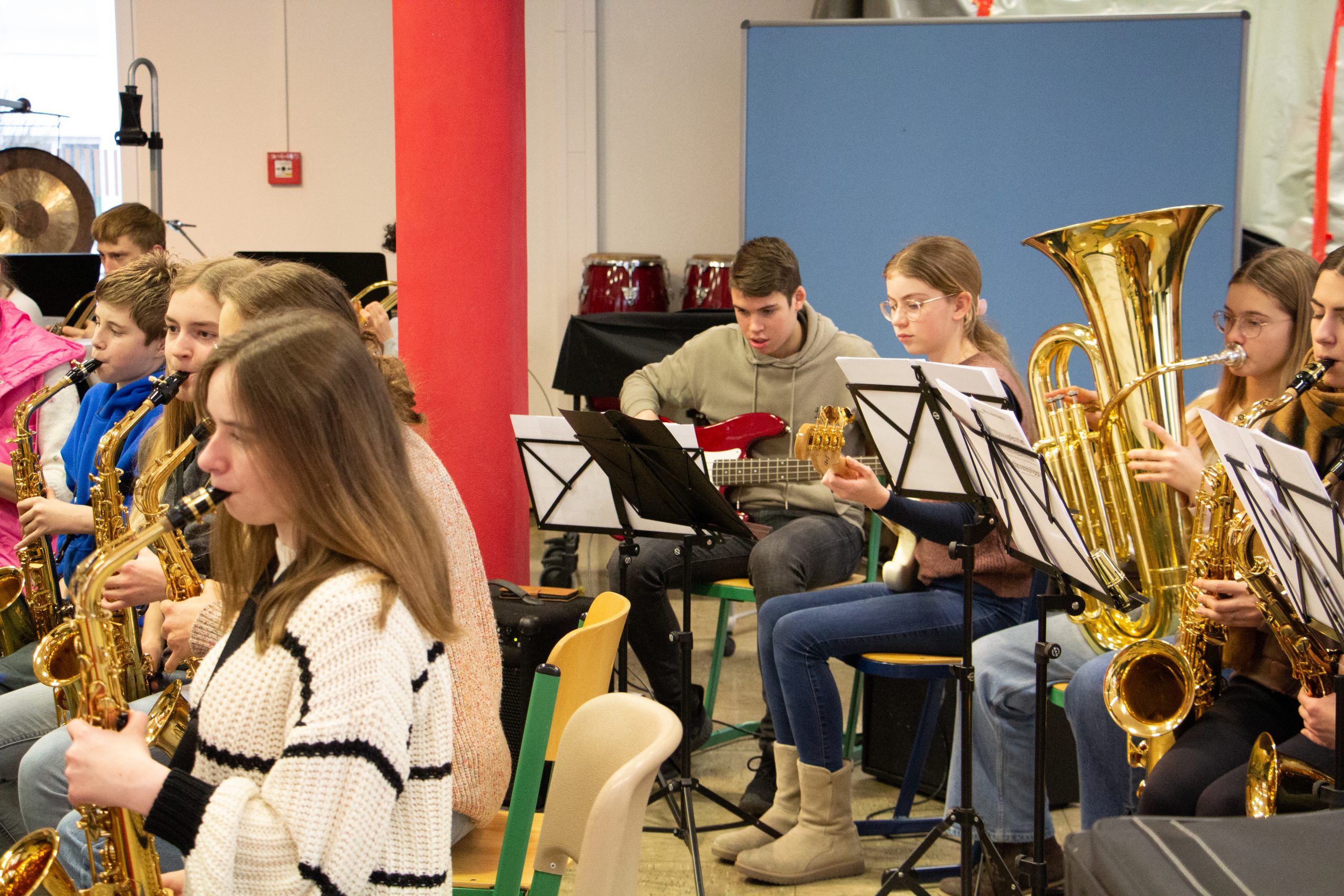 Beim Adventskonzert wandelt sich die Band zu einem großen Blasorchester oder mit Streichern zum Sinfonieorchester und sorgt damit auch für leisere, einfühlsame Töne. Für kleinere Anlässe und festliche Umrahmungen wird ein gemischtes Bläserensemble oder ein Blechbläserensemble mit Pauken gebildet. Die BigBand ist sehr flexibel und wandelbar. Sie vertritt die Schule immer wieder bei außerschulischen Veranstaltungen. Mit von der Partie sind u. a. die Instrumente Trompete, Saxofon, Posaune, Klarinette, Flöte, Klavier, E-Bass, Gitarre und Schlagzeug, gespielt von Schülern ab der 7. Jahrgangsstufe. Teure und große Instrumente wie das Bariton- und Tenorsaxofon werden von der Schule gestellt. Die wichtigsten Veranstaltungen im Jahr sind das Adventskonzert, das Frühjahrskonzert und der Auftritt beim Schulfest. Dazu kommen Highlights wie Open Air-Veranstaltungen und Großprojekte zusammen mit Chor und Orchester sowie Umrahmungen von Festakten.