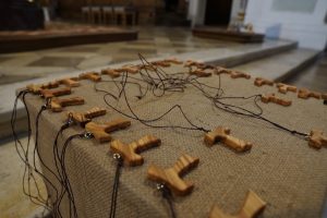 Höhepunkt des ökumenischen Gottesdienstes war erneut der Moment, als die Tutoren der 10. Klassen, verstärkt durch Elftklässler, den neuen Schülerinnen und Schülern der beiden 5. Klassen in persönlicher, individueller Weise das „Tau“, das „Franziskus-Kreuz“, mit guten Wünschen überreichten. Möge dieses Segenszeichen allen an „unserem BONA“ Begleitung und Zuversicht sein, auf dass es ein gutes, friedvolles Schuljahr werde!