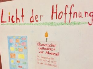 SchülerInnen des Bona haben zusammen mit Pfarrer Lothar Hartmann und Pfarrerin Ilse-Marie Hannebauer einen ökumenischen Gottesdienst mit dem Thema „Licht der Hoffnung“ zur Adventszeit gestaltet. › mehr