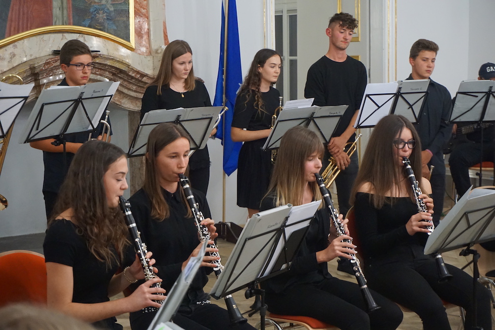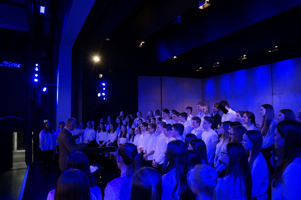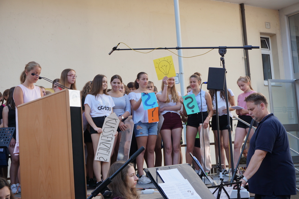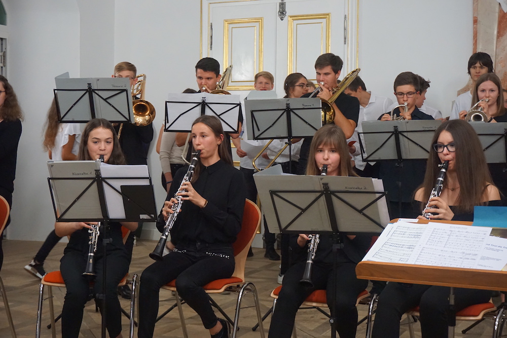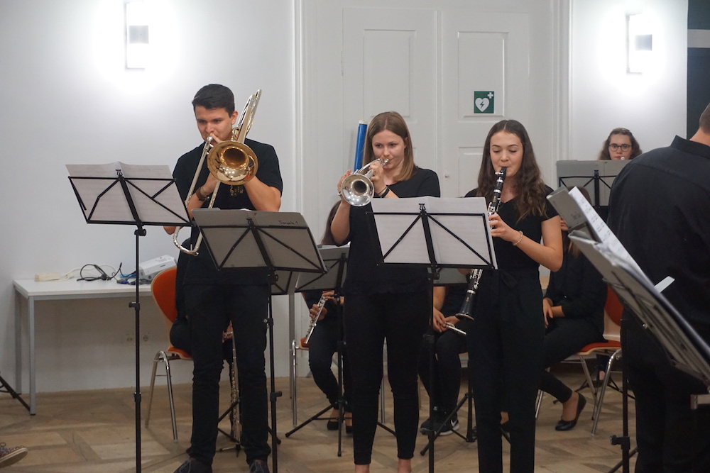 Auch Schülerinnen und Schüler kamen zu Wort bzw. gestalteten das Programm musikalisch oder kreativ mit – ein Zeichen dafür, dass sie im Mittelpunkt des neuen Campus stehen. Besonders beeindruckend waren hier Beiträge der Chorklassen beider Schulen und die Holz- und Blechbläserensemble des Gymnasiums.
