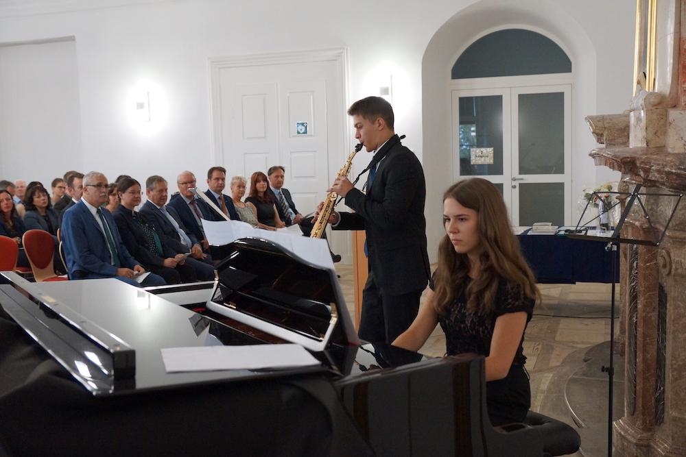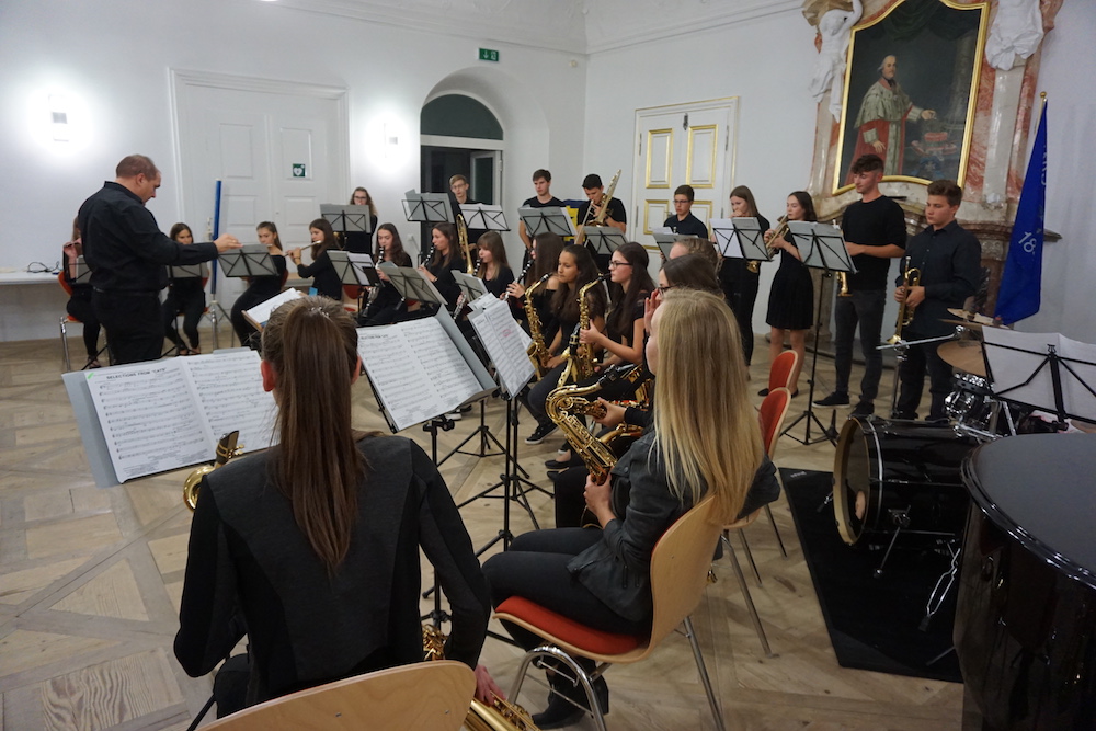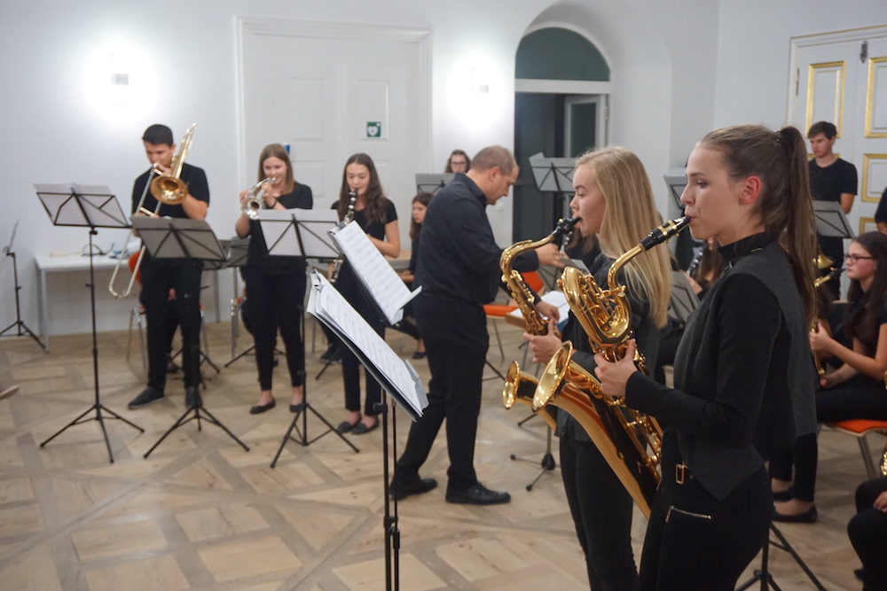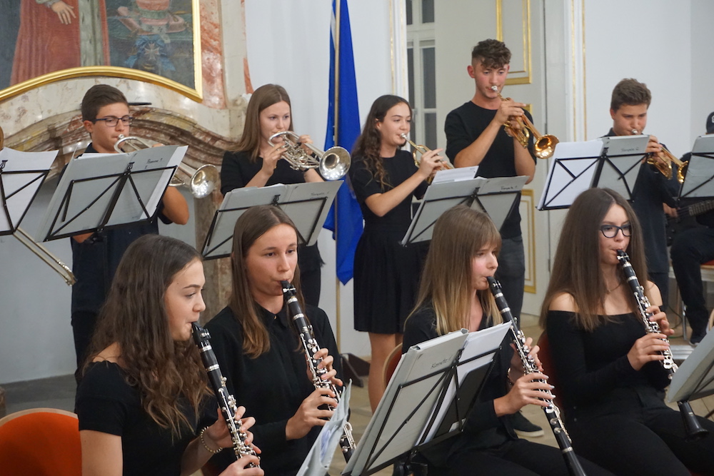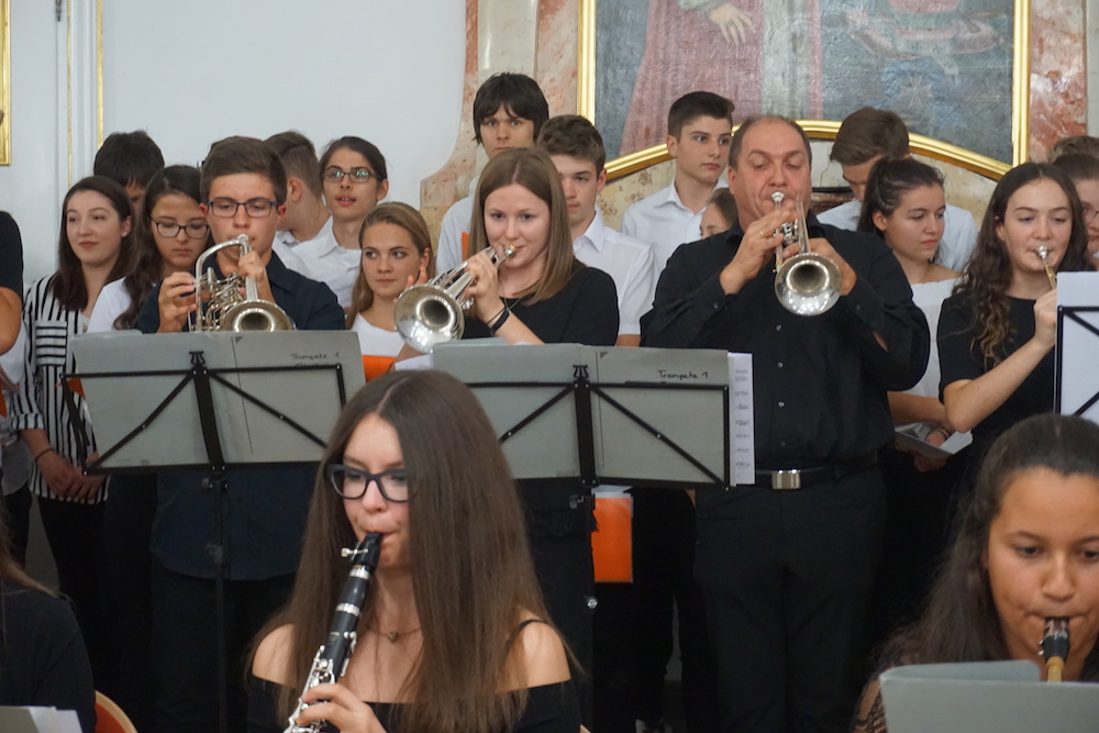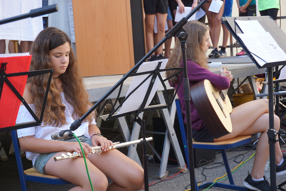 Auch Schülerinnen und Schüler kamen zu Wort bzw. gestalteten das Programm musikalisch oder kreativ mit – ein Zeichen dafür, dass sie im Mittelpunkt des neuen Campus stehen. Besonders beeindruckend waren hier Beiträge der Chorklassen beider Schulen und die Holz- und Blechbläserensemble des Gymnasiums.