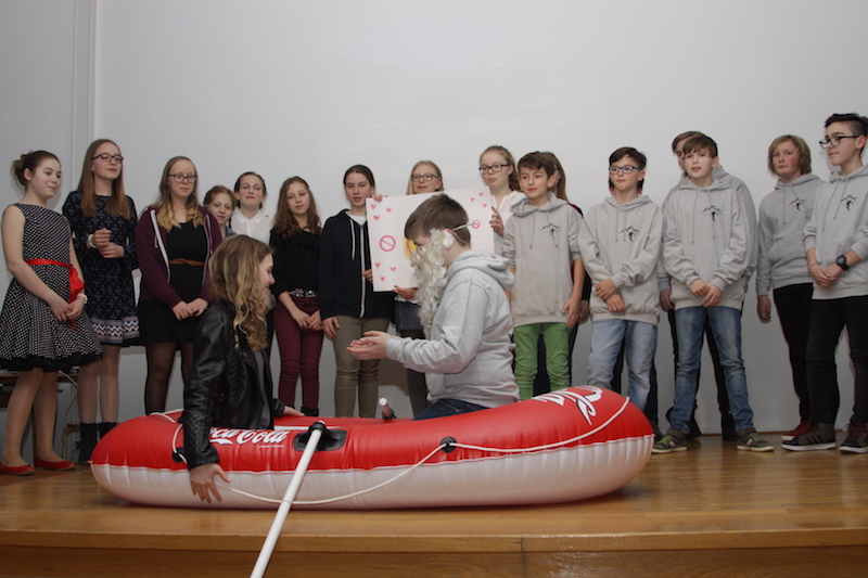 Am Abschiedsabend bedankten sich die Bona-Schüler bei Ihren Gastfamilien, die sie auf sehr herzliche Weise in ihre Familien integriert und die mit Ihnen an den Wochenenden teilweise Fahrten bis in den Yellowstone Nationalpark unternommen hatten, musikalisch und mit einer Präsentation über Dillingen und ihre Schule. Das Highlight an diesem Abend war zweifelsohne die Aufführung des Märchens Rotkäppchen, das sowohl die Akteure als auch die Zuschauer sichtlich genossen.