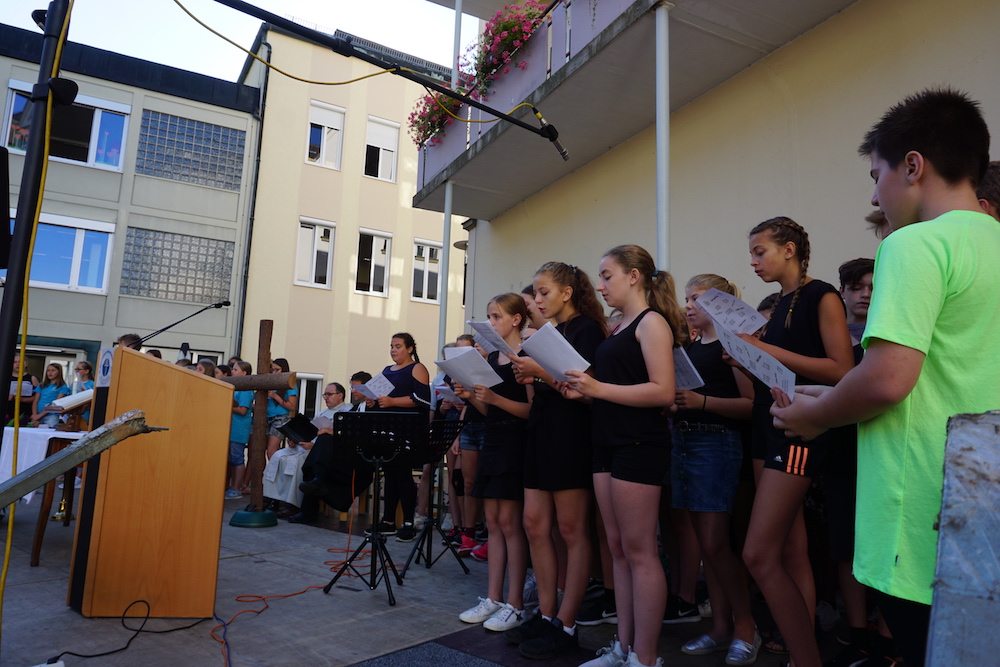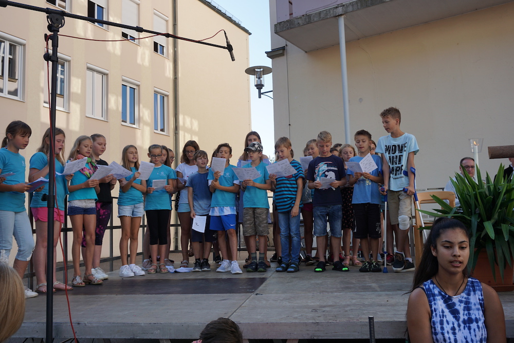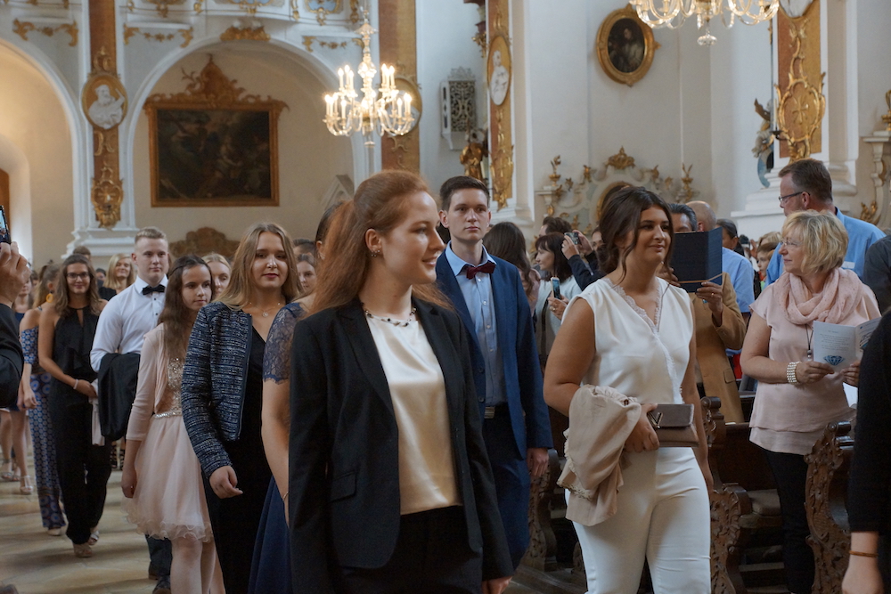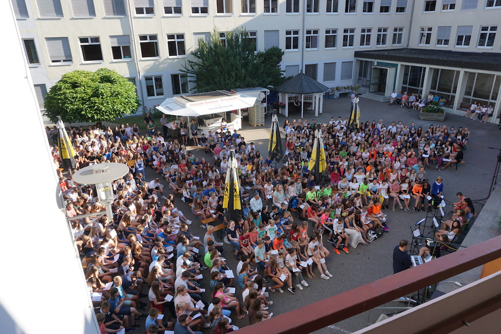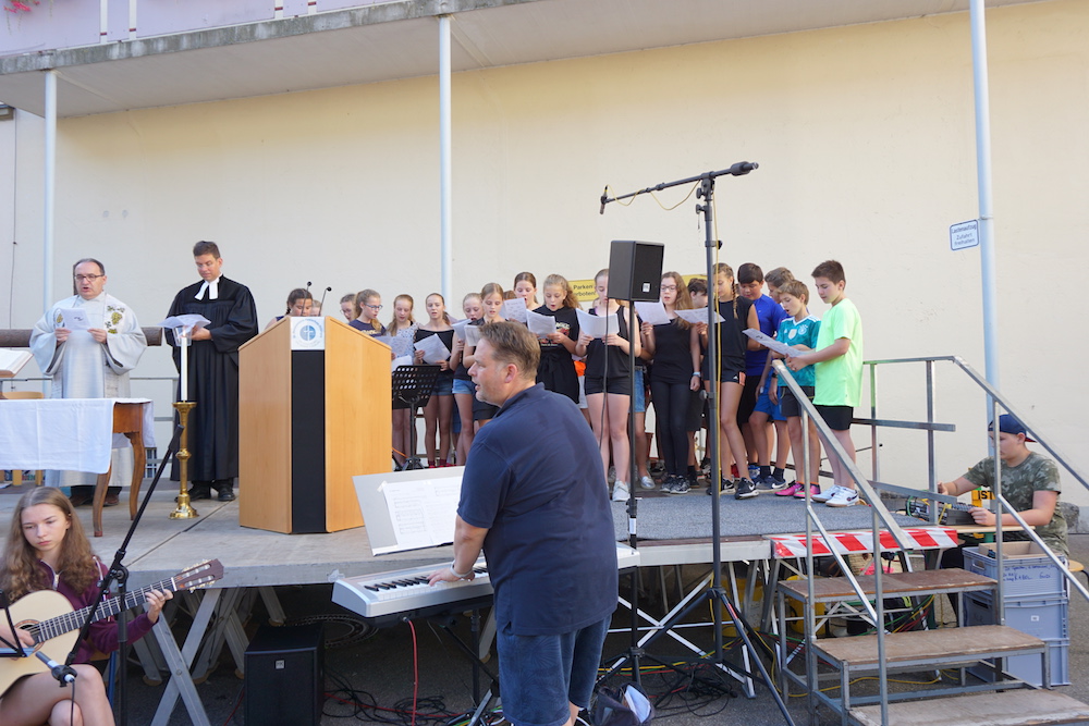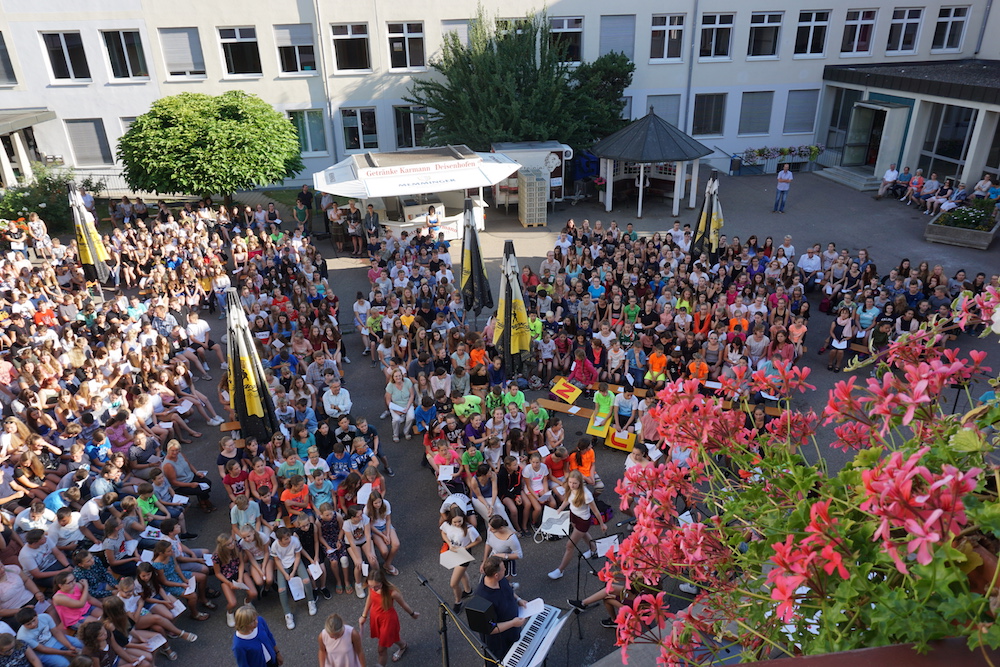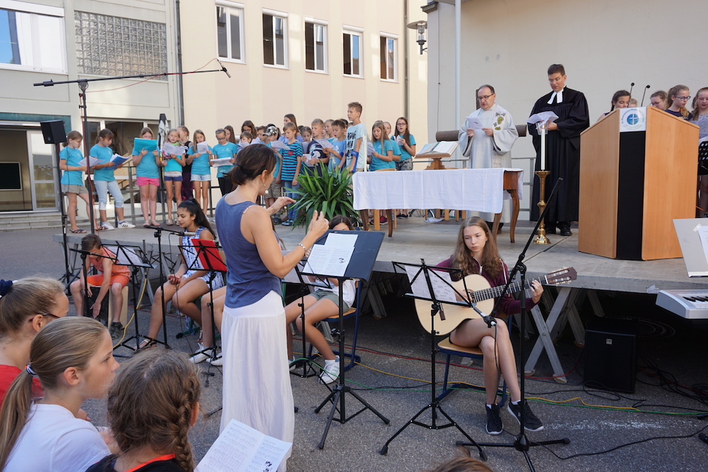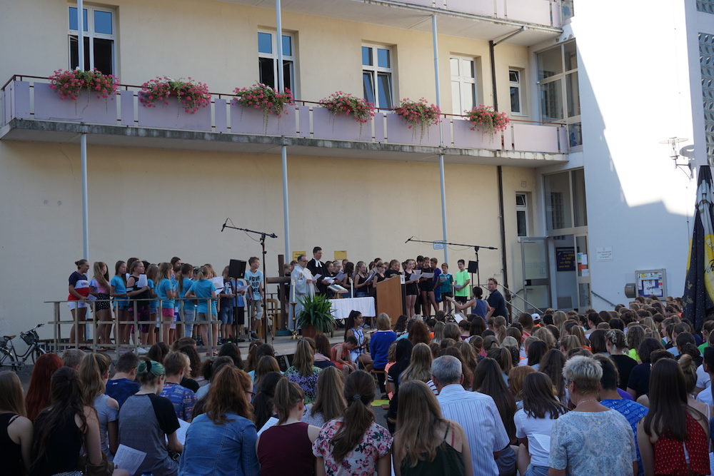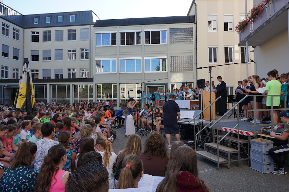 „Was wäre ein Schulgottesdienst ohne Musik?“, fragte Pfarrer Heinrich am Ende. Mitreißende Lieder zum Mitsingen und die Klänge von Coldplays „Viva la vida“, passend zum Leitwort, das Leben in seiner Fülle zu entdecken und zu leben, ausgesucht und eingespielt von den Schülerinnen und Schülern des „Leistungsfach Musik“ unter der Leitung von Marie-Sophie Schweizer füllten den Raum der Basilika und führten zu einem tosenden Applaus am Ende eines würdigen Abschlusses des Schuljahres.