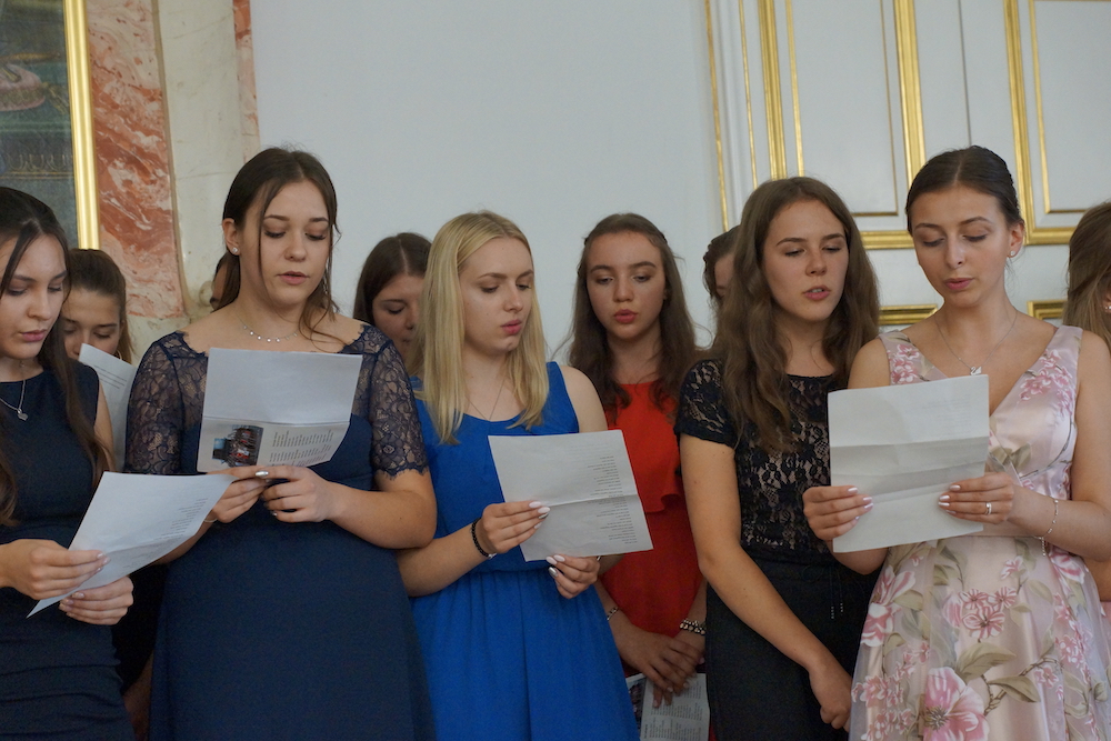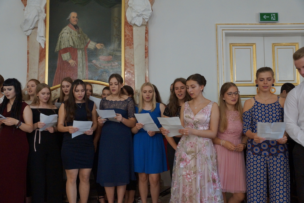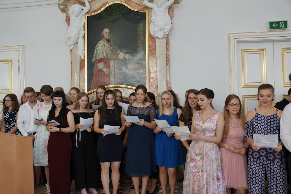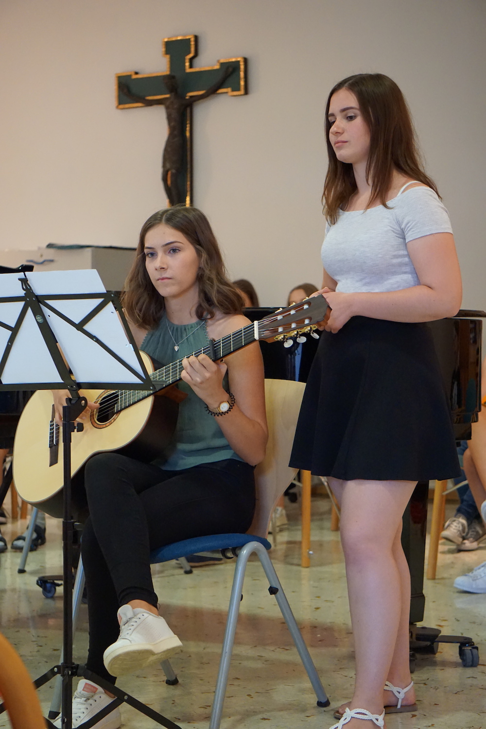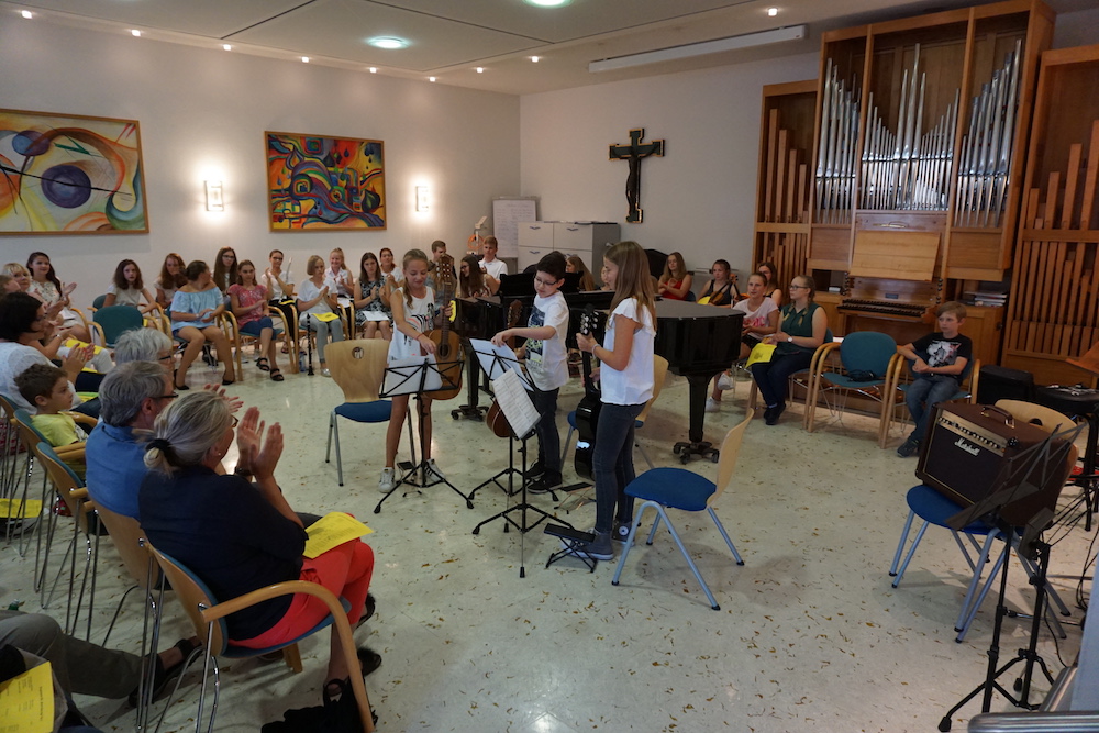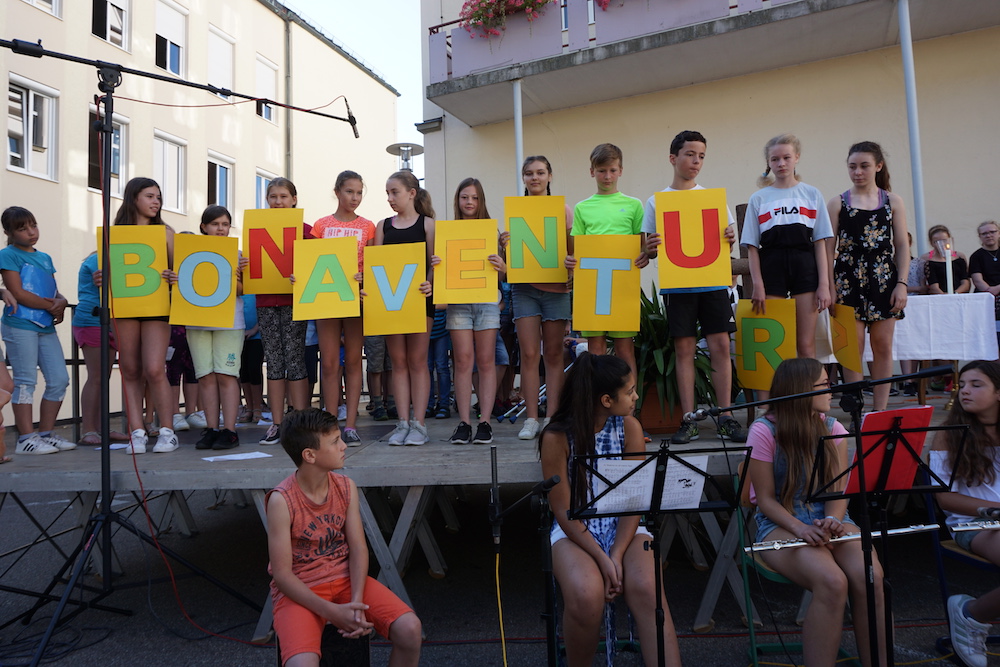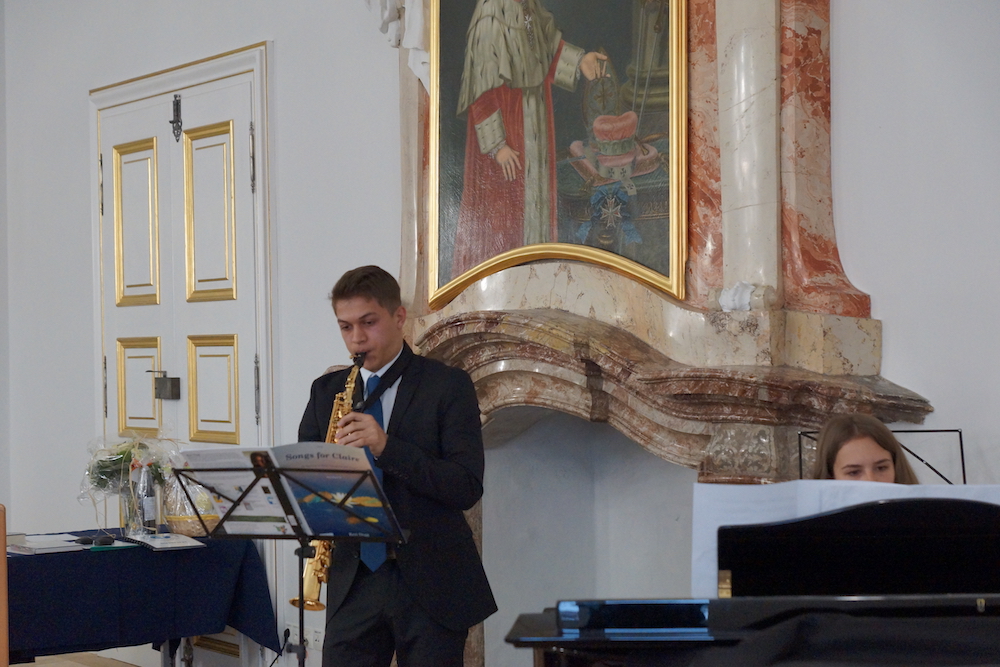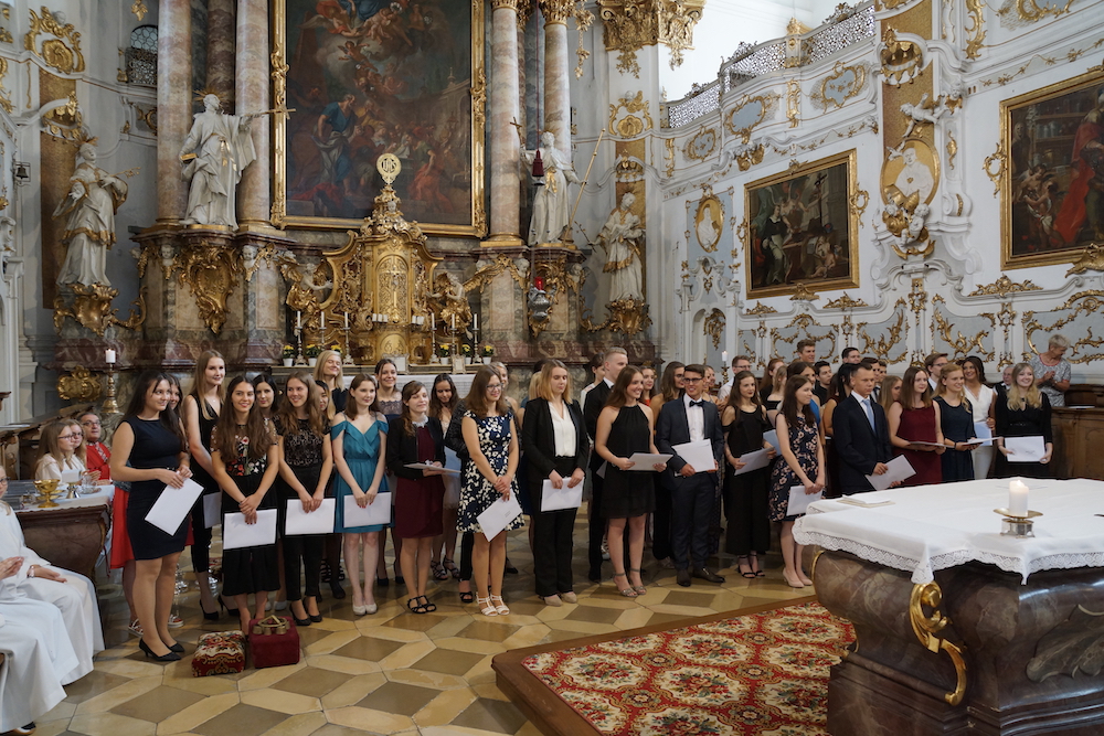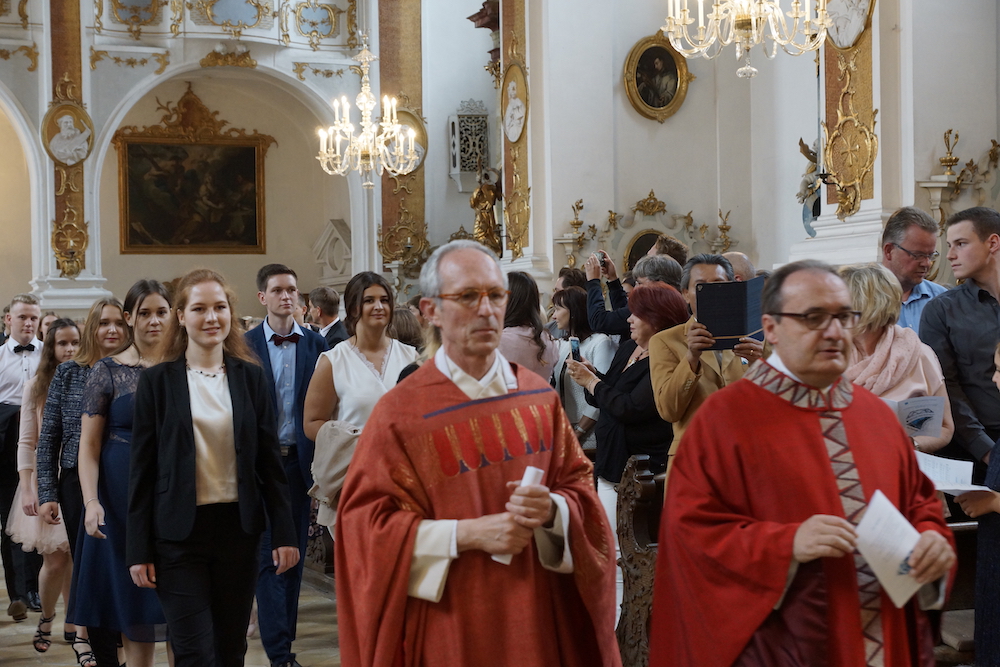 „Was wäre ein Schulgottesdienst ohne Musik?“, fragte Pfarrer Heinrich am Ende. Mitreißende Lieder zum Mitsingen und die Klänge von Coldplays „Viva la vida“, passend zum Leitwort, das Leben in seiner Fülle zu entdecken und zu leben, ausgesucht und eingespielt von den Schülerinnen und Schülern des „Leistungsfach Musik“ unter der Leitung von Marie-Sophie Schweizer füllten den Raum der Basilika und führten zu einem tosenden Applaus am Ende eines würdigen Abschlusses des Schuljahres.