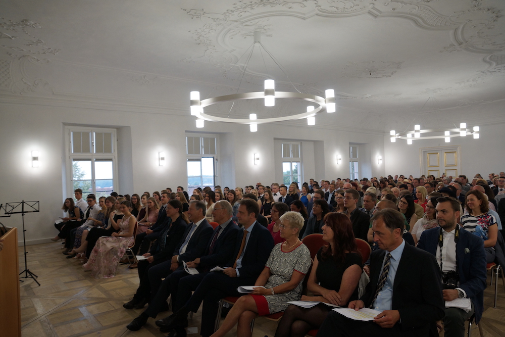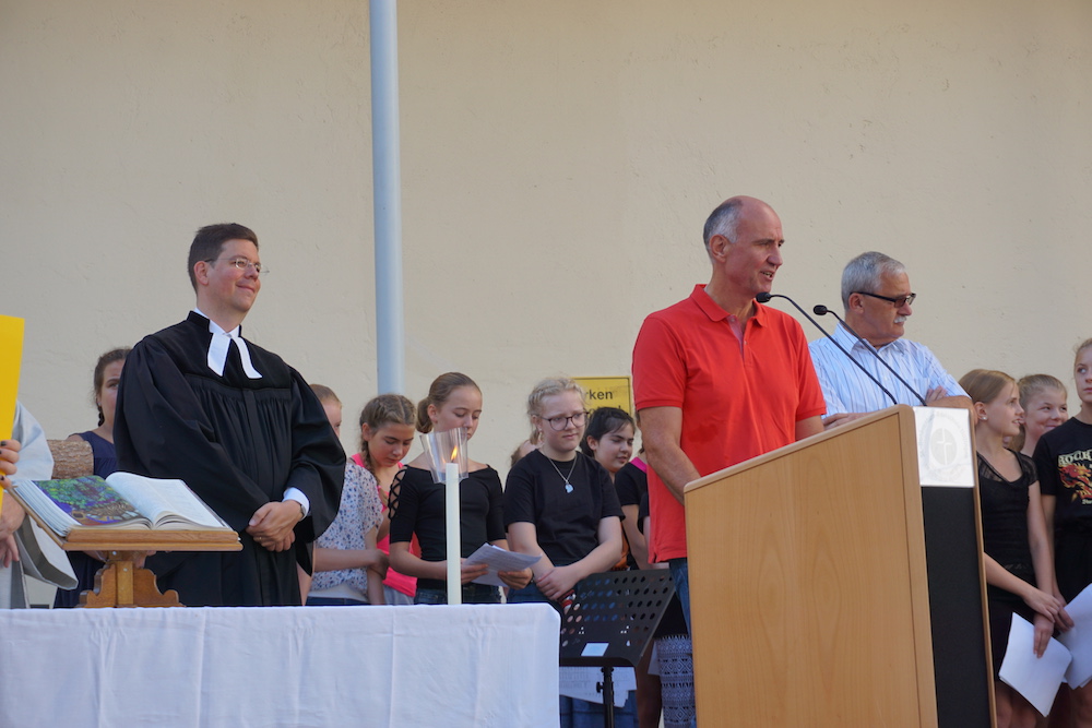 Im Anschluss an den Gottesdienst fand der offizielle Festakt zur Einweihung des Campus statt. Zahlreiche Ehrengäste sprachen Grußworte, darunter der Oberbürgermeister Frank Kunz, Landrat Müller sowie Herr Kosak als Direktor des Schulwerks. In ihren Reden würdigten sie das Engagement aller Beteiligten, das diesen modernen, zukunftsweisenden Lernort möglich gemacht hat.