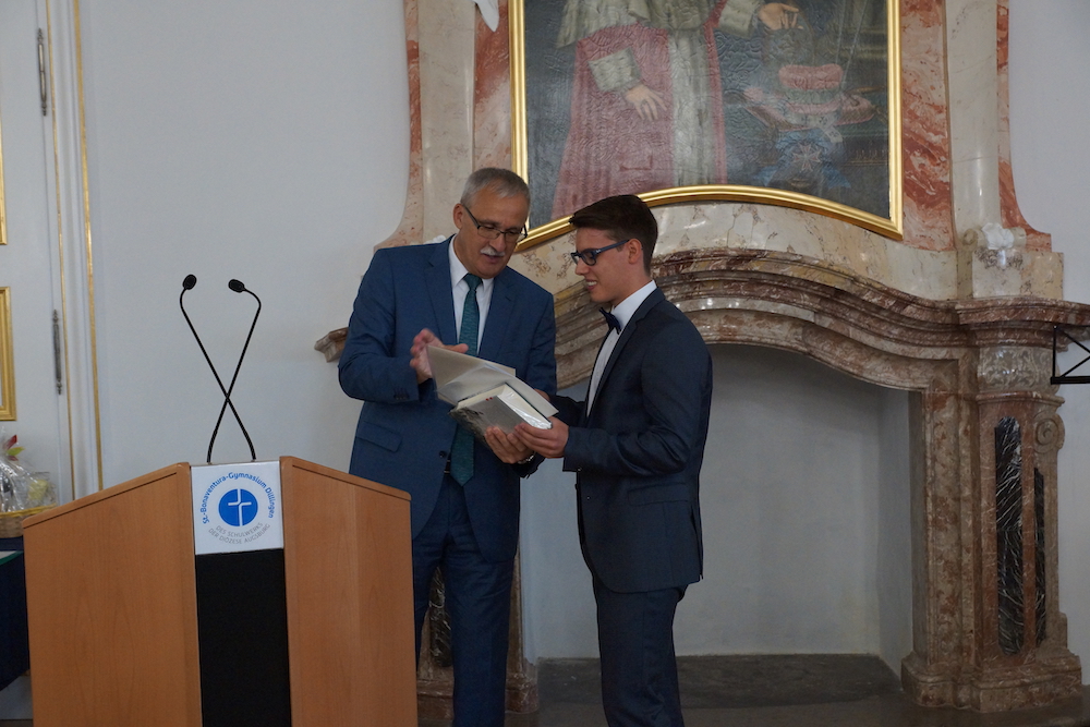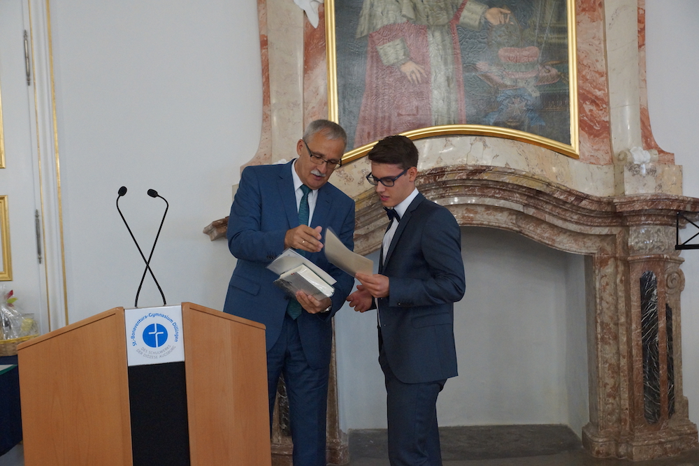 Im Rahmen eines Festaktes honorierte nun die Vorsitzende der Stiftung, Frau Dr. Doris Sennekamp, das Engagement des St.-Bonaventura-Gymnasiums und übergab Schulleiter Franz Haider das Zertifikat über die Teilnahme an dieser bedeutenden Evaluationsmaßnahme. Darüber hinaus ist das Bonaventura-Gymnasium zur Modellschule des Schulwerks der Diözese Augsburg für digitale Modernisierung ernannt worden. Eine neue umfassende medientechnische Ausstattung ermöglicht es, den Unterricht zeitgemäß und für die Schüler ansprechend zu gestalten, und damit den Weg des digitalen Lernens zu ebnen.