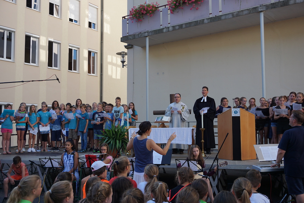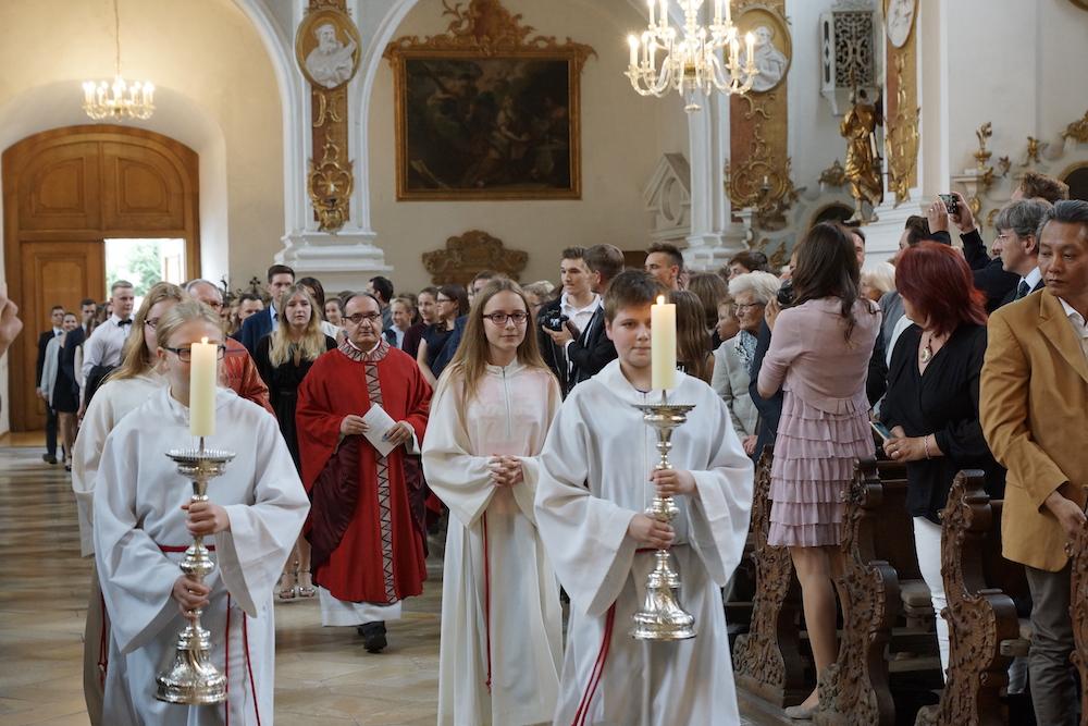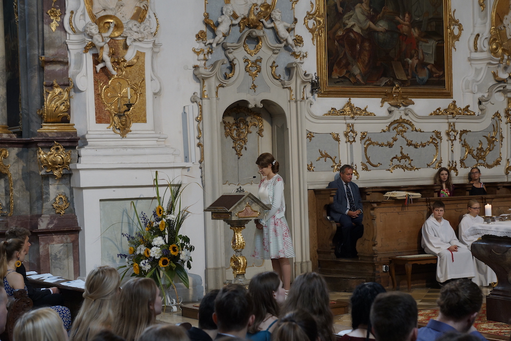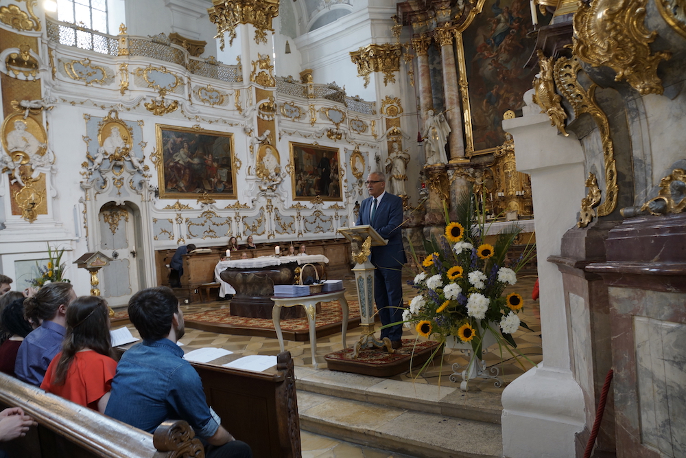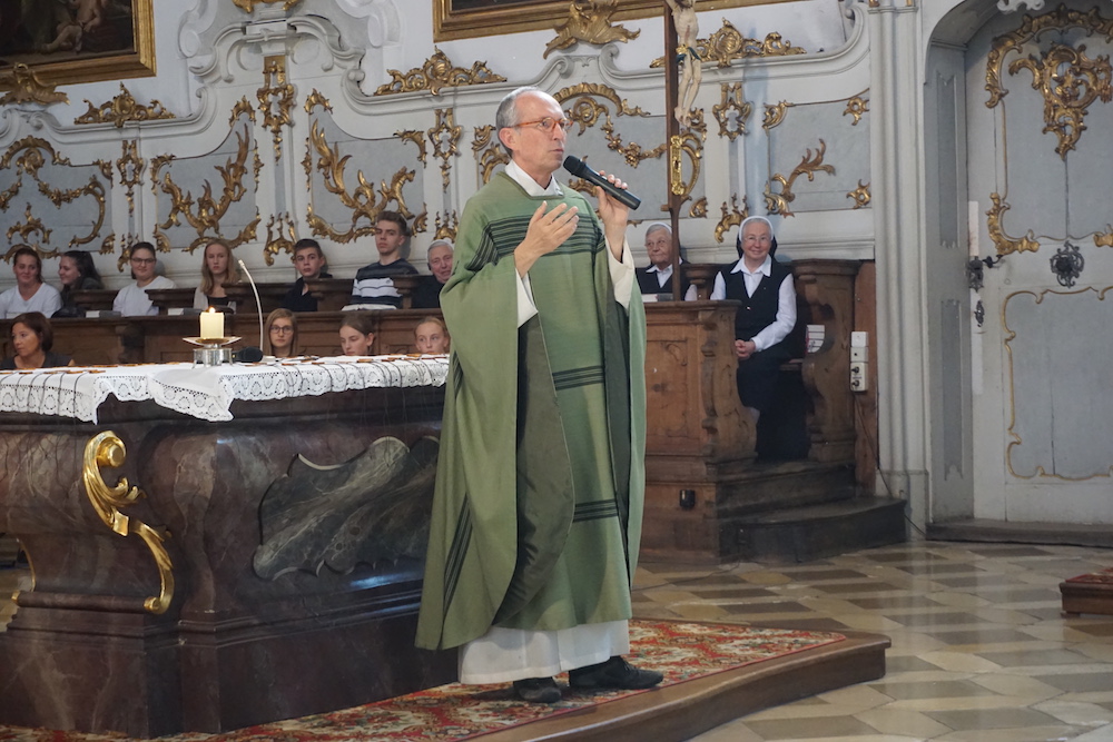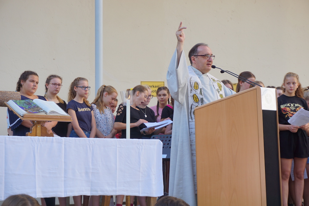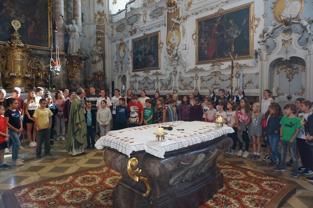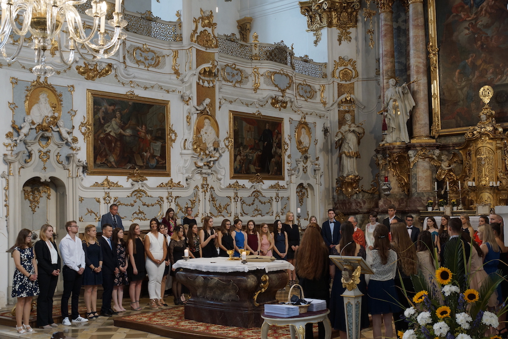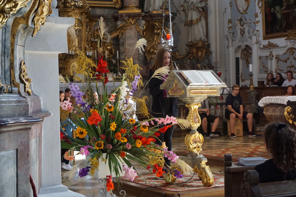 „Die Fülle des Lebens“, unter diesem Leitwort stand der Gottesdienst zum Schluss des Schuljahres 2024/25 in der Basilika St. Peter. Stadtpfarrer Monsignore Harald Heinrich verband die Anspielszene, vorgetragen von Mira und Simone (beide 10b), über eine beinahe danebengegangene Party mit der biblischen Hochzeit zu Kana. Beide Male wird den Gastgebern geholfen und eine Blamage erspart, weil da jemand ist, der die Freude voll zur Geltung bringen will. So konnte man etwas von der „Fülle des Lebens“ erahnen und erspüren. › mehr