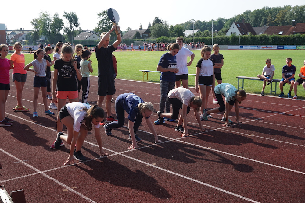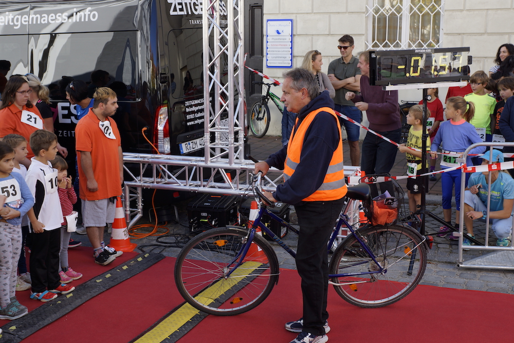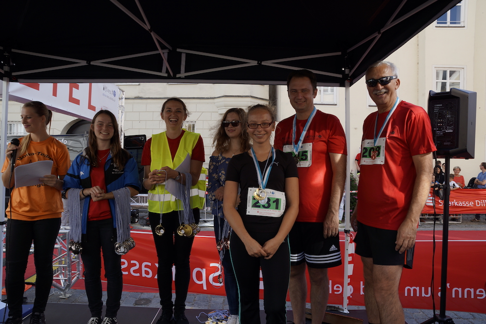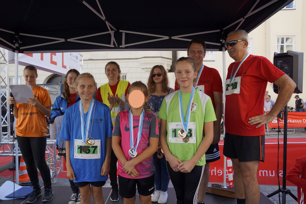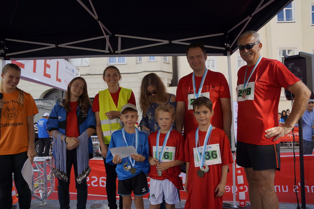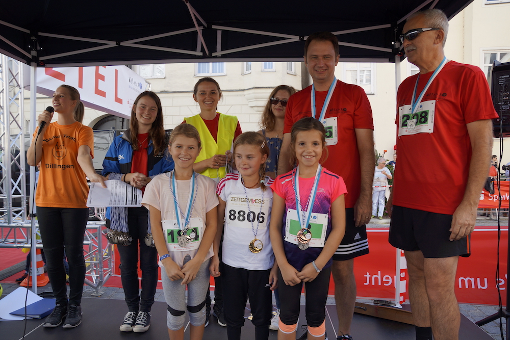 Die Organisatoren, Viktoria Hatzenbühler vom St.-Bonaventura-Gymnasium, TV-Mitglied Juri Hatzenbühler, TV-Vorsitzende Erika Schweizer und Oberbürgermeister Frank Kunz freuten sich nach dem Erfolg der beiden vergangenen Jahre heuer über 700 Läufer und viele Zuschauer begrüßen zu können. Tatkräftig unterstützt wurden die Veranstalter von Erich Gruber vom Tri-TV Lauingen.