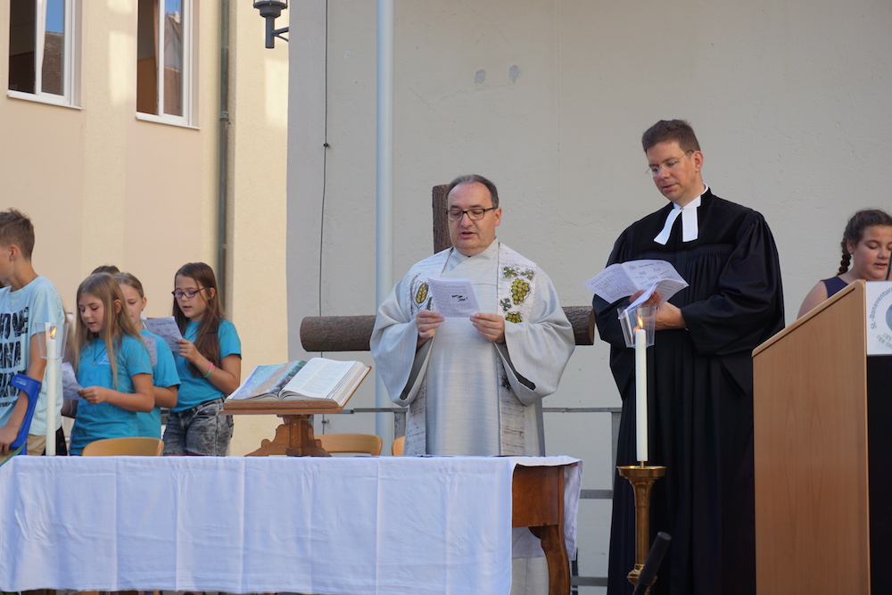 Pfarrer Launhardt, unser neuer evangelischer Religionslehrer, und Pfarrer Heinrich spendeten gemeinsam den Segen.