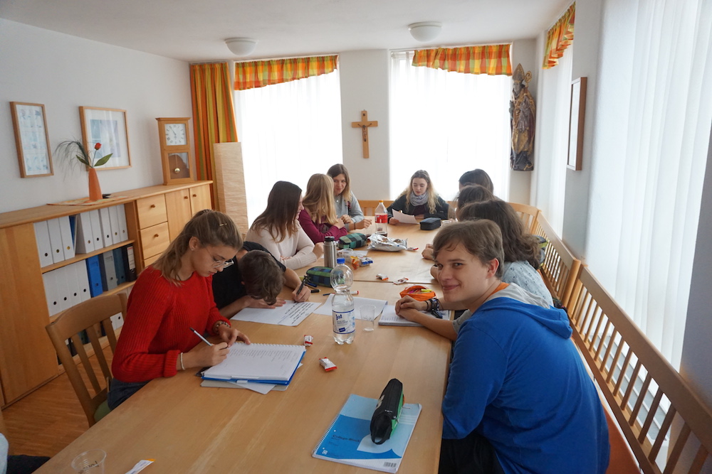 Kurz nach der Ankunft am 4.Oktober wurden die beiden Klassen herzlich von ihren Referenten Miri und Tom in Empfang genommen und absolvierten klassenweise schon die erste Einheit, auf die noch viele weitere zu verschiedenen Themen folgten. Auch eine Klosterführung mit Bruder Marinus durfte nicht fehlen. Sowohl die morgendlichen als auch die abendlichen Besinnungen rundeten die ereignisreichen Tage ab.