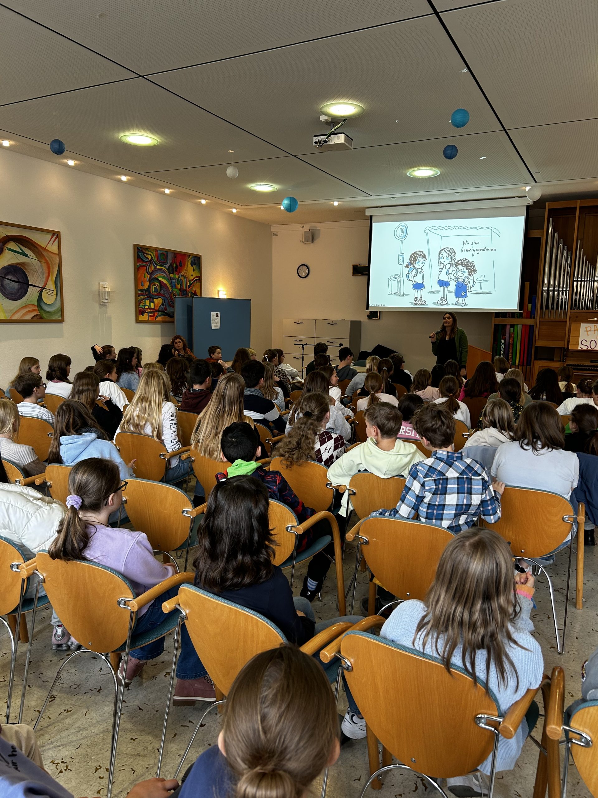 Am Freitag 17. Oktober beglückte die Schriftstellerin und Drehbuchautorin Anna Maria Praßler zahlreiche Schüler*innen der 5. und 6. Klassen an ihrer «Alma Mater», dem St. Bonaventura-Gymnasium in Dillingen, mit einer Lesung zum Kinderbuch-Bestseller «Keine Party ist auch keine Lösung». Dabei kam es zu einem regen Austausch zwischen den interaktiven Fragen der jungen Lernenden und den liebevollen Antworten der ehemaligen Bonaventura-Abgängerin, welche in spannende Diskussionen über die Inhalte des Buches mündeten. › mehr