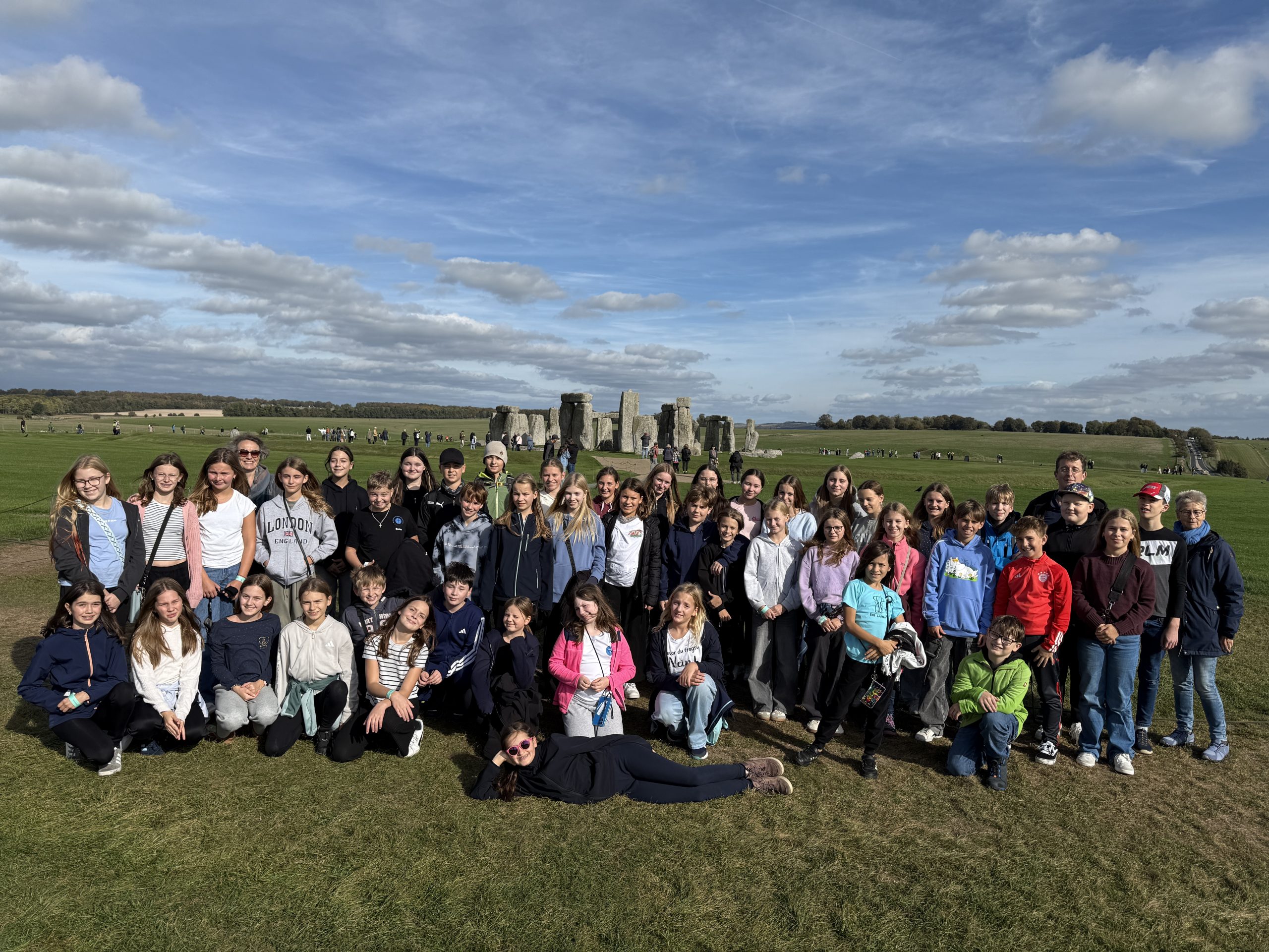 Bei unserem ersten Besichtigungspunkt in Windsor Castle, hatten wir ein bisschen Zeit, gemeinsam in einem Pub zu frühstücken und erste Souvenirs zu kaufen. Dann ging es auch schon weiter nach Stonehenge, der zweiten Attraktion an diesem Tag. Dort spazierten wir zu den Steinkreisen. Gegen Abend erreichten wir Torquay, unser Ziel, wo wir am Busbahnhof unsere Gastfamilien kennenlernten. Die freundlichen, motivierten Engländer nahmen uns gut auf (trotz oder gerade wegen “punishment“), und versorgten uns mit mal mehr, mal weniger typisch englischem Essen.