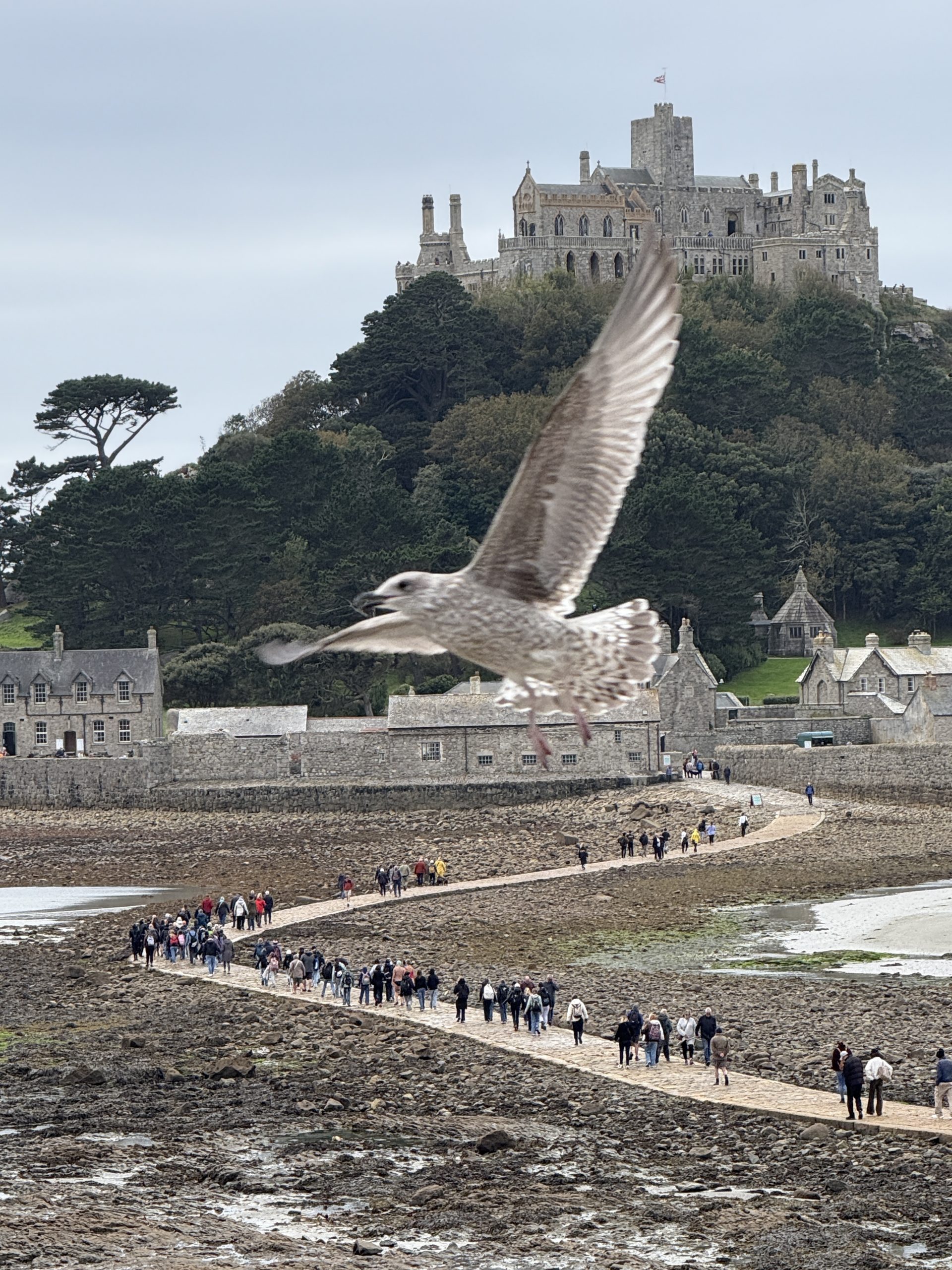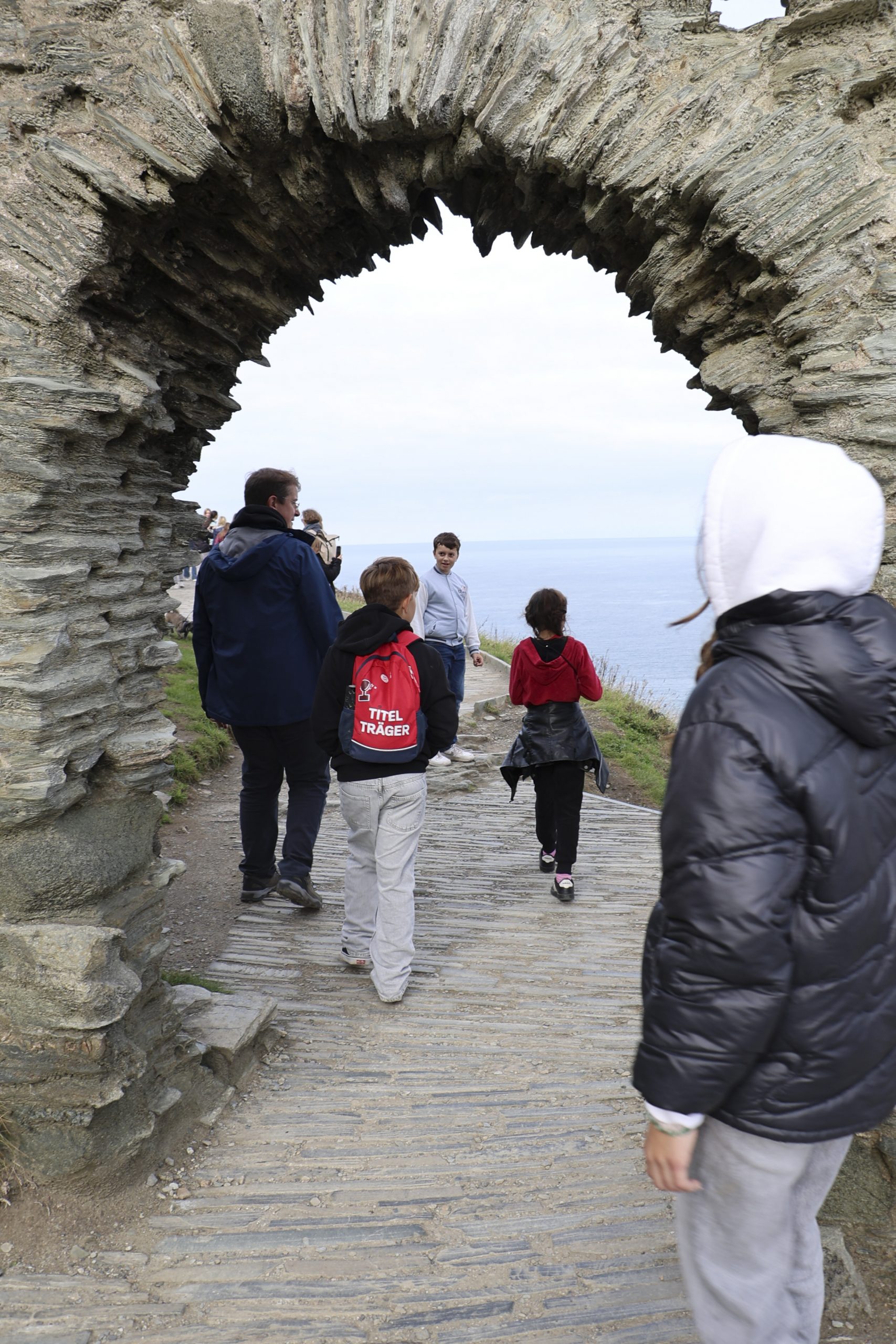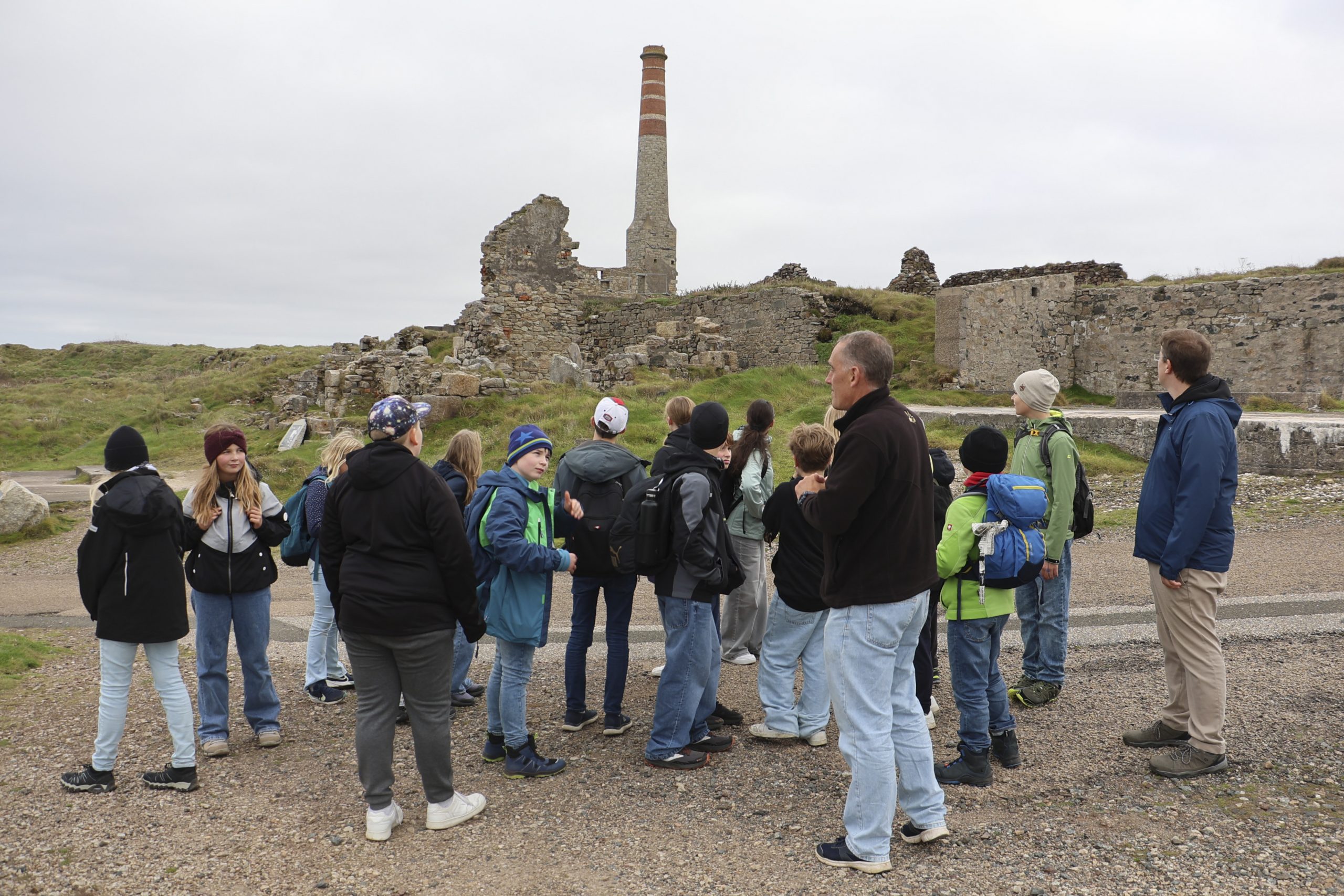 Am Donnerstag waren wir ebenfalls viel an der frischen Luft: an der Seeluft, genauer gesagt. Wir besichtigten zunächst St. Michael’s Mount, eine Insel mit einem Schloss darauf, welche nur bei Ebbe durch einen Weg aus Steinplatten zugänglich ist, und danach die Levant Tin Mine, eine stillgelegte Zinnmine direkt an einer Steilküste. Die damaligen Arbeitsbedingungen (auch für Kinder), die wir dort geschildert bekamen, konnten uns fast davon überzeugen, dass Schule besser ist. Fast, denn wir waren damals ja nicht selbst dabei.